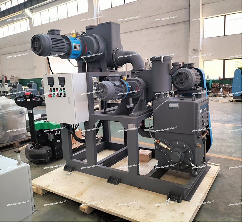 启动EVP真空泵机组(通常是滑阀泵/旋片泵 + 罗茨泵组合),将干燥罐压力降至 100pa 左右。
